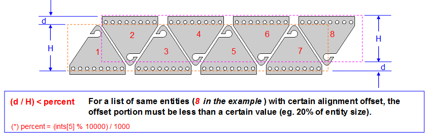 Max. Grid List Offset (%): Enter a value for the percentage of the offset portion (d), which is a percentage of the part size (H). For example, if a value of 20% is entered, the width of the offset portion of the part must be less than 20% of the part size in H. This will combine the parts as a single list and be cut accordingly. However, if d over H is greater than 20%, the parts will be separated into two lists.