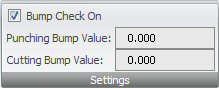 Place a check in the box to enable the Bump Check feature. Bump Check On allows a zone or protective border to be placed around a part.